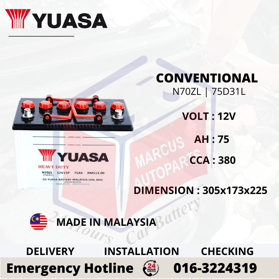 YUASA CONVENTIONAL N70ZL | 75D31L CAR BATTERY